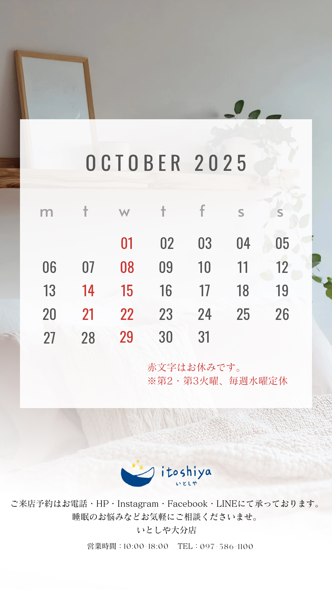 営業日のお知らせ-10月-UPDATE. 2025.9.26